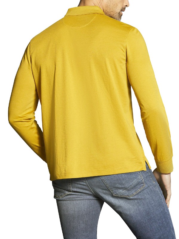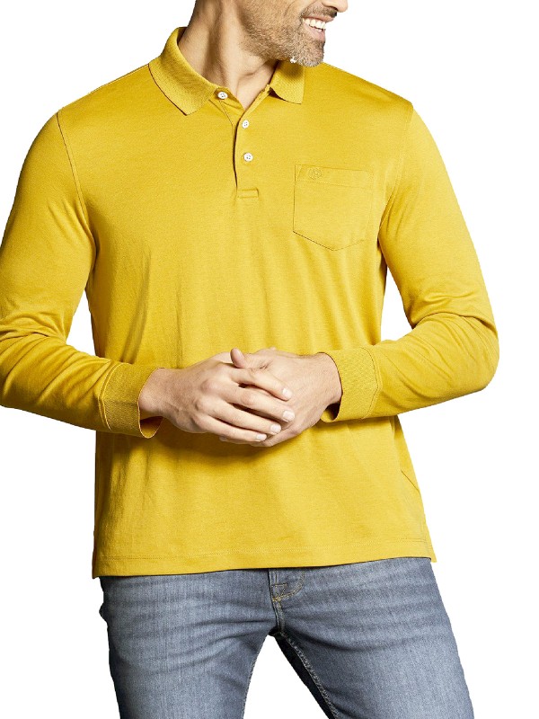 Long sleeved polo shirt crafted from a fine piqué cotton blend. Features a classic polo collar with a chest pocket with brand logo embroidery and small side vents. Ideal for everyday casual wear.