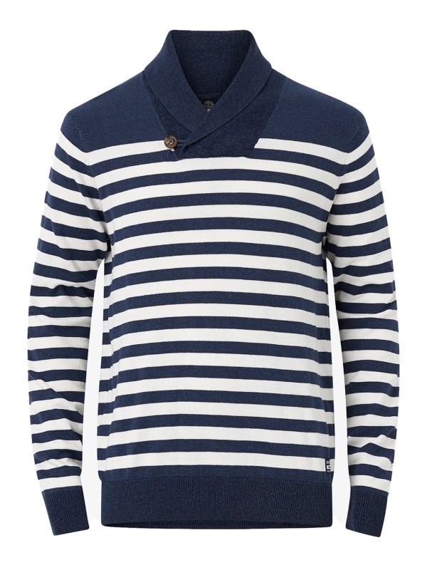 Knitted sweater Gray from On Our Terms. Wrapped, ribbed collar with button. Ribbed cuffs at the cuffs and at the bottom. Length approx. 73cm in size M.