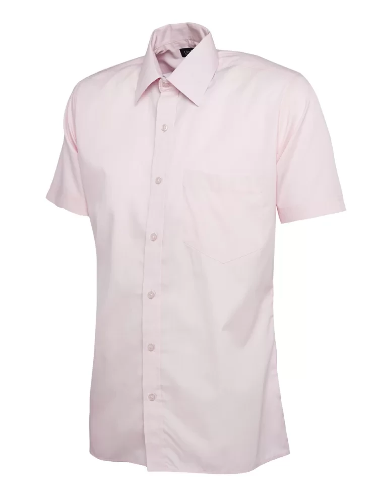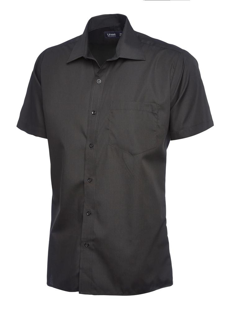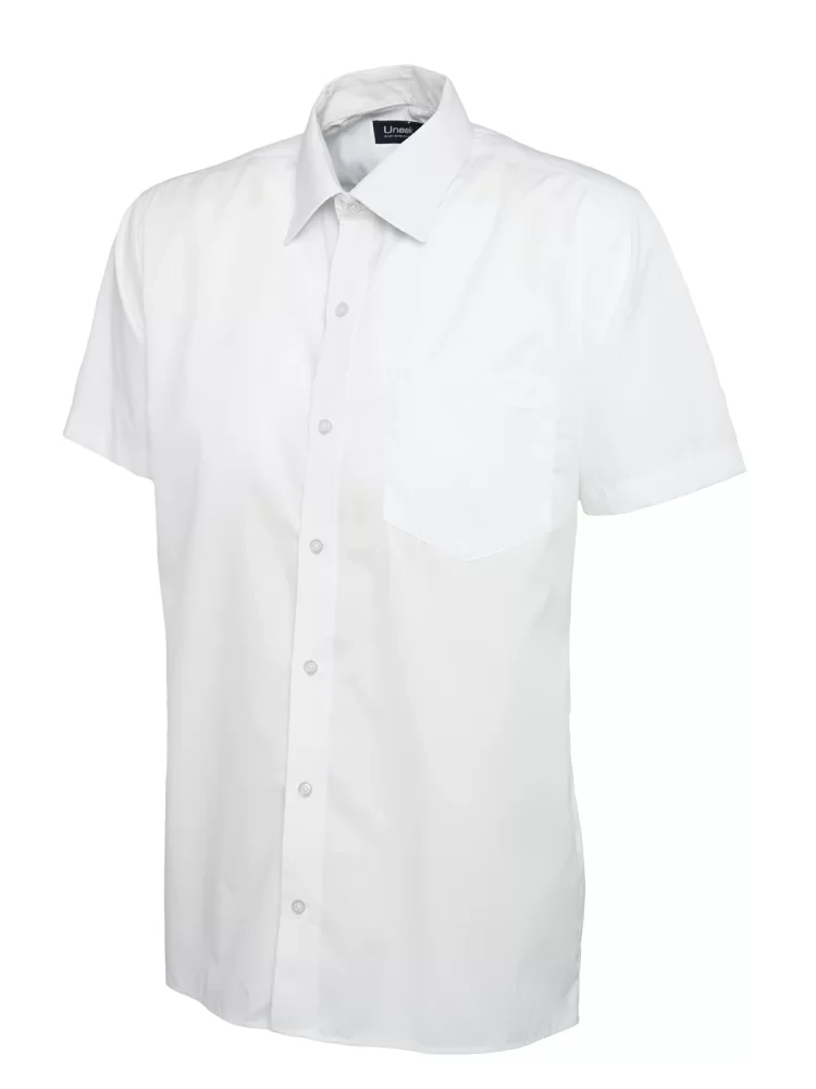 65% Polyester 35% CottonShort SleeveChest Pocket (left side as worn)Stiffened Classic CollarSelf Coloured ButtonsAdjustable Cuffs