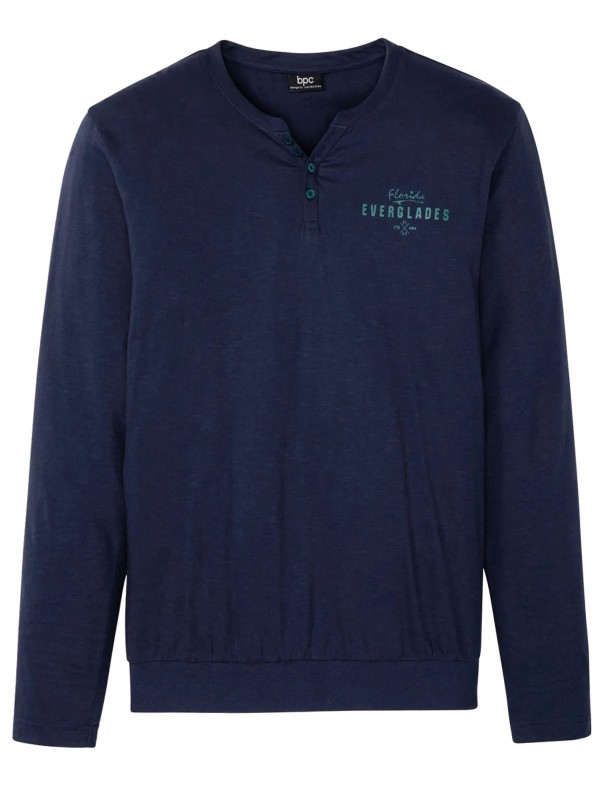 The Henley top is a style classic that no wardrobe is complete without. Made with a soft cotton that feels as good as it looks. Featuring a notch neckline with button fastening, long sleeves and banded hem. Length 28in.