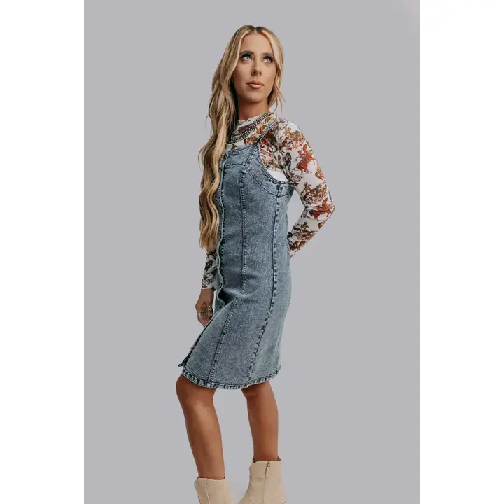 -Denim -Button Down -Dress -Country Western Flair -Spaghetti Strap -Knee Length
