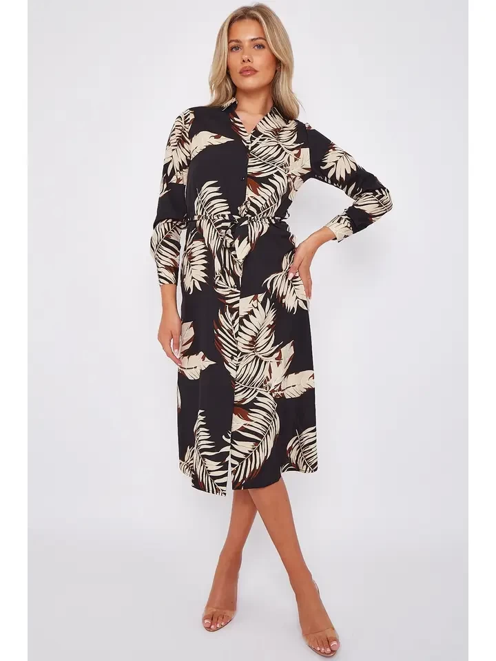 This Mono Geometric Print Maxi Shirt Dress features a bold monochrome pattern, a belted waist for a flattering silhouette, and a curved hem for added style. With two side pockets for convenience, this dress is both functional and fashionable. Perfect for a variety of occasions, it can be dressed up for the office, styled casually for a weekend brunch, or accessorized for an evening out.