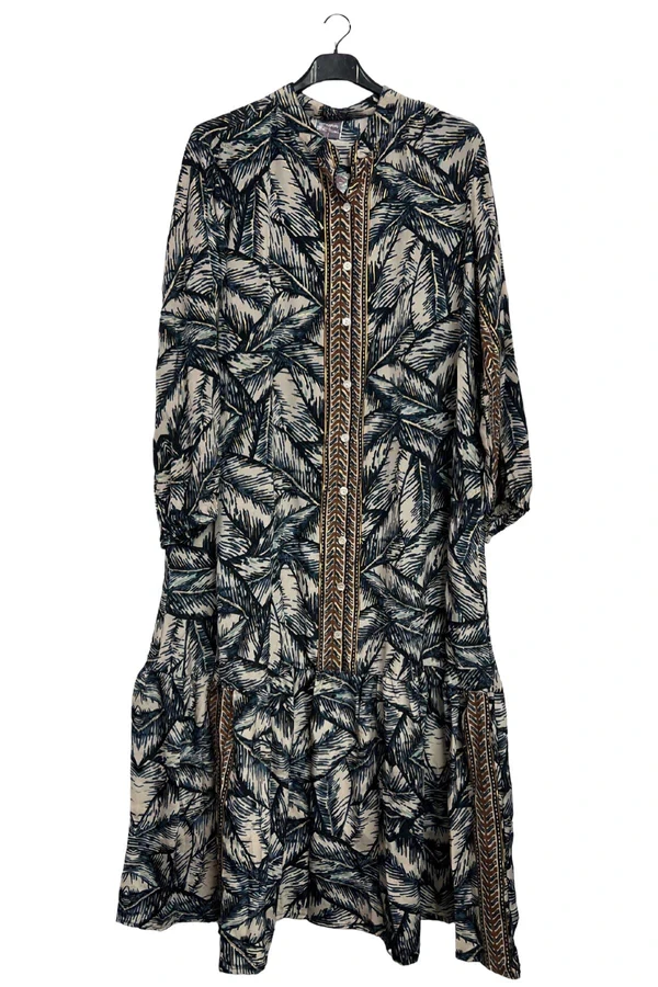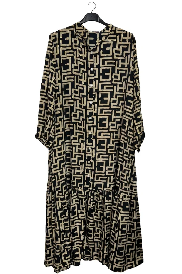 Flow through your day in effortless style with this plus-size dress featuring a multicolored wave-like floral print, reminiscent of Japanese artistry and oceanic themes. Crafted from lightweight silk, the fabric drapes beautifully, offering all-day comfort with a touch of elegance. The dress features a subtle collar with a slight V or split-neck opening, blending classic tailoring with a relaxed vibe. Long sleeves and a loose, flowy silhouette—possibly in a kaftan or A-line cut—make this a versatile piece, perfect for both day and evening wear. Whether you’re attending a garden brunch or a seaside dinner, this dress delivers a graceful statement. The floral pattern in soothing ocean hues adds movement and charm, while the plus-size fit ensures ease and sophistication.
