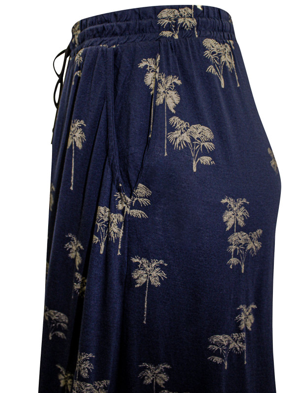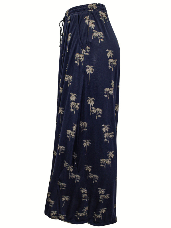 In a flattering maxi length, this maxi skirt looks good with anything. It's softly textured, with metallic foil palm trees, side pockets, and an elasticated waist with drawstring ties. Length 40in.