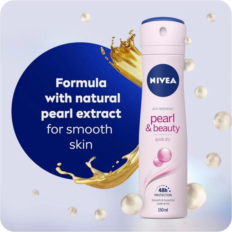 Nivea Pearl and Beauty Quick Dry Anti-Perspirant Deodorant Body Spray 150ml combines effective sweat protection with gentle care for underarms. Its advanced formula provides up to 48 hours of reliable anti-perspirant protection against sweat and body odor. Infused with pearl extract, it helps leave underarms smooth, soft, and beautifully cared for. The quick-dry formula absorbs instantly without leaving sticky or greasy residue. Delivers a subtle, fresh, and feminine fragrance that lasts throughout the day. Suitable for all skin types, including sensitive skin, and dermatologically tested for safety. Helps maintain dryness and comfort even during busy or active days. Compact and convenient spray ensures even application and easy use. Lightweight and buildable formula allows layering for all-day confidence. Ideal for work, outings, workouts, or special occasions. Protects underarms while leaving them feeling soft and pampered. Quick-drying texture ensures immediate comfort and freshness. Prevents odor and wetness without compromising clothing. Nivea Pearl and Beauty Quick Dry Anti-Perspirant Body Spray 150ml delivers lasting freshness, smooth underarms, and confident all-day protection.