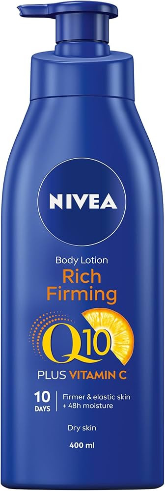 NIVEA Q10 Firming Rich Body Lotion with Vitamin C noticeably firms skin & improves elasticity in 10 days.