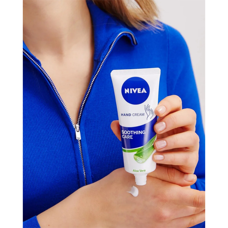 The Nivea Soothing Care Hand Cream Aloe Vera 75ml is an intensive hand cream specifically designed to provide instant and long-lasting relief for dry, rough, and cracked hands. Enriched with the natural goodness of Aloe Vera extract, which is known for its healing and antioxidant properties, and often containing Jojoba Oil, the formula works to soothe irritation, nourish the skin, and support its natural regeneration process. This hand cream promises up to 24 hours of deep moisturization to ensure hands feel velvety smooth, soft, and healthy. Its lightweight, fast-absorbing texture means it penetrates quickly into the skin without leaving a greasy or sticky residue, allowing you to get back to your tasks immediately after application. The product is dermatologically tested and approved for skin compatibility, making it a gentle option suitable for all skin types, including sensitive skin. Housed in a convenient and portable 75ml tube, it is an ideal size for keeping in your handbag, car, or desk for on-the-go hydration and protection. Users consistently praise its effectiveness, pleasant mild scent, and non-greasy feel, considering it a great value for money option in daily hand care.