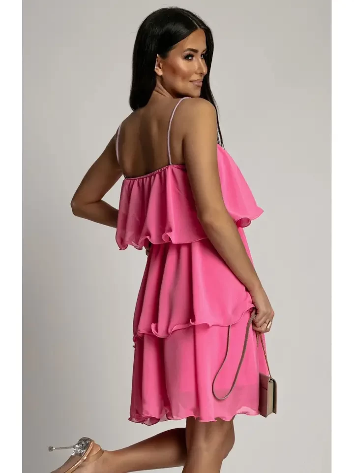 Kenedie Chiffon Frill Tiered Dress-Pink