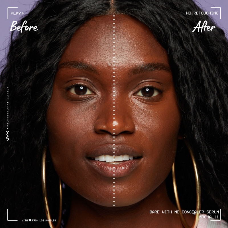 NYX Professional Makeup Bare With Me Serum Concealer 9.6ml – 11 Mocha is a lightweight serum-infused concealer designed to provide natural medium coverage while delivering deep hydration to the skin. Its innovative skincare-makeup hybrid formula helps conceal dark circles, blemishes, redness, and uneven skin tone while keeping the skin feeling soft and moisturised. Shade 11 Mocha is ideal for deep to very deep skin tones, blending smoothly for a seamless and balanced finish. The water-based formula glides effortlessly onto the skin and blends easily without looking heavy or cakey. Infused with skin-loving ingredients such as tremella mushroom, cica extract, and green tea, the concealer helps soothe and hydrate the skin while improving its overall appearance. It provides up to 24 hours of hydration, making it ideal for dry, stressed, or sensitive skin. The breathable formula offers medium buildable coverage that looks natural and skin-like. Its smooth texture helps minimise the appearance of dryness and uneven texture for a fresh complexion. The concealer works well under the eyes, on blemishes, or anywhere extra coverage is needed. It can even be used on the face and body for targeted correction. The lightweight consistency blends easily using fingers, brushes, or makeup sponges. Designed to provide a radiant natural finish that enhances the skin’s glow. Suitable for all skin types including dry and sensitive skin. The pump packaging allows controlled and hygienic application. NYX Professional Makeup Bare With Me Serum Concealer 11 Mocha delivers hydrating coverage, soothing skincare benefits, and a naturally flawless finish. ✨