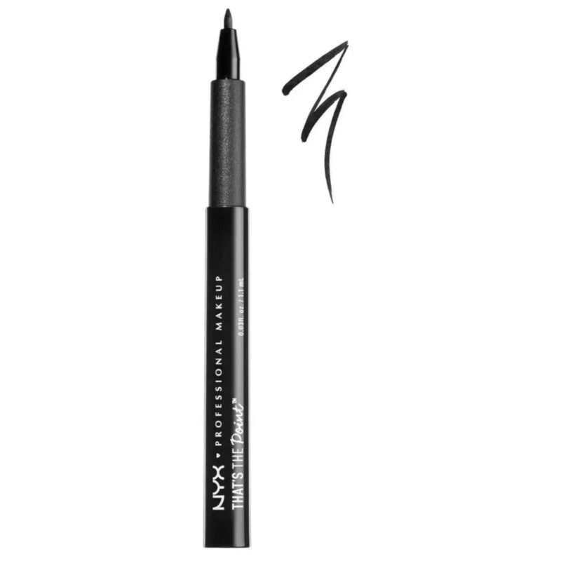 NYX Professional Makeup That’s The Point Eyeliner in 03 Black offers ultra-precise application and intense pigment for creating sleek, bold, and defined eye looks with ease. Featuring a unique felt-tip applicator with a carefully designed shape, this eyeliner gives you full control to create everything from sharp wings to fine lines with expert precision. The deep black, satin-matte formula glides on smoothly without skipping, tugging, or bleeding, delivering high-impact colour in a single stroke. Its long-wearing, smudge-resistant formula stays put throughout the day, making it ideal for both everyday wear and dramatic eye looks. Lightweight and comfortable on the lids, it dries quickly to prevent transfer and maintains a flawless finish. Whether you're going for a minimalist flick or graphic eyeliner artistry, this pen adapts to your style with ease. The ergonomic design allows for steady grip and controlled movement, even for beginners. Compact and travel-friendly, it’s perfect for makeup bags and on-the-go touch-ups. Suitable for all eye shapes and skin types, it enhances eyes effortlessly. Cruelty-free and vegan, it aligns with ethical beauty choices. For crisp, long-lasting eyeliner looks with professional precision, NYX That’s The Point in Black is an essential must-have.