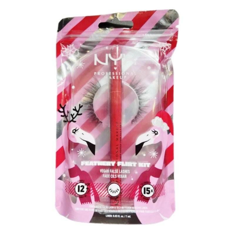 The NYX Professional Makeup Vegan False Lashes Feathery Flirt Kit offers a complete eye-enhancing experience with lightweight, fluttery lashes that add natural volume and soft definition. Designed with cruelty-free, vegan synthetic fibres, these lashes provide a comfortable wear and a feather-light feel, ideal for both everyday glam and special occasions. The Feathery Flirt style features wispy, layered strands that mimic the look of natural lashes while adding a flirty, eye-opening effect. Easy to apply and reusable with proper care, the lashes maintain their shape and softness after multiple uses. The kit includes a latex-free, gentle lash adhesive that ensures a secure hold without irritation. Perfect for lash beginners and beauty pros alike, the flexible lash band allows for effortless placement and a seamless blend with your natural lashes. These falsies offer a subtle lift and length, enhancing your eyes without being overly dramatic. The tapered ends and varying lengths create a multidimensional finish that flatters all eye shapes. Whether you're going for a soft romantic look or adding a final touch to a bold eye, this lash kit delivers. Compact and travel-friendly, it’s great for on-the-go glam. Free from animal-derived ingredients and harsh chemicals, it’s suitable for sensitive eyes. Elevate your lash game with this flirty, fluttery vegan must-have from NYX.