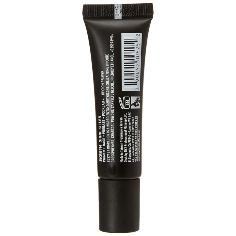 NYX Professional Makeup Shine Killer Primer Mini is a travel-size mattifying face primer designed to control excess oil and create a smooth base for long-lasting makeup application. This lightweight primer helps reduce shine and gives the skin a fresh matte finish, making it ideal for oily and combination skin types. Infused with charcoal, known for its oil-absorbing properties, it helps minimise unwanted shine and keeps the complexion looking balanced throughout the day. The silky gel formula glides easily onto the skin and dries down to a translucent finish without leaving a heavy or greasy feel. It creates a smooth canvas that helps foundation apply evenly and last longer. The primer works especially well on the T-zone, where oil and shine tend to appear the most. Its lightweight texture feels comfortable on the skin and helps prevent makeup from sliding or fading. The formula contains ingredients such as dimethicone and silica that help blur imperfections and improve makeup longevity. It can be worn alone for a naturally matte look or under foundation for a flawless finish. The mini size is perfect for travel, makeup bags, or quick touch-ups throughout the day. Suitable for daily use, it helps maintain a fresh, shine-free complexion. The vegan formula is easy to apply with fingertips and blends seamlessly into the skin. NYX Shine Killer Primer Mini delivers oil control, smoother skin texture, and longer-lasting makeup in a convenient compact size. ✨