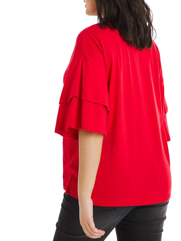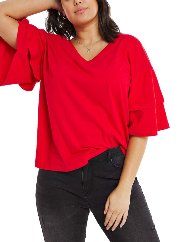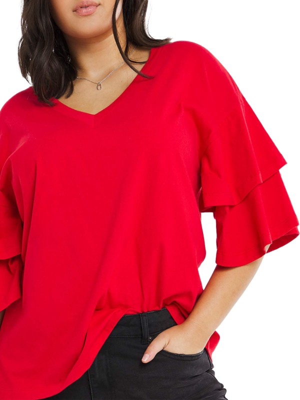Say hello to your new wardrobe essential; the frill sleeve T-shirt. Featuring a V-neck and an oversized fit this is the perfect top to take you from day to night. Length 25in.