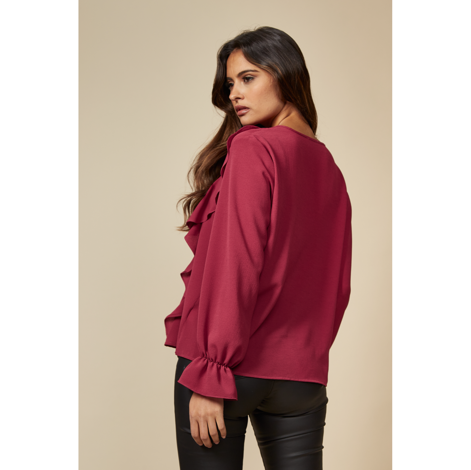 Oversized Top Ruffle Front Details Long Sleeve Tops Perfect for Summer Perfect Tops for Summer Weekends Summer Garden Parties Designed for a relaxed fit Cosy and Comfy Classy and Stylish Relaxed and Roomy Spring-Summer Tops Lightweight Woven Fabric Oversized Tops Red Tops Red Blouses Oversized Fit Size 18 Bridesmaid Wedding Guest Plus Size