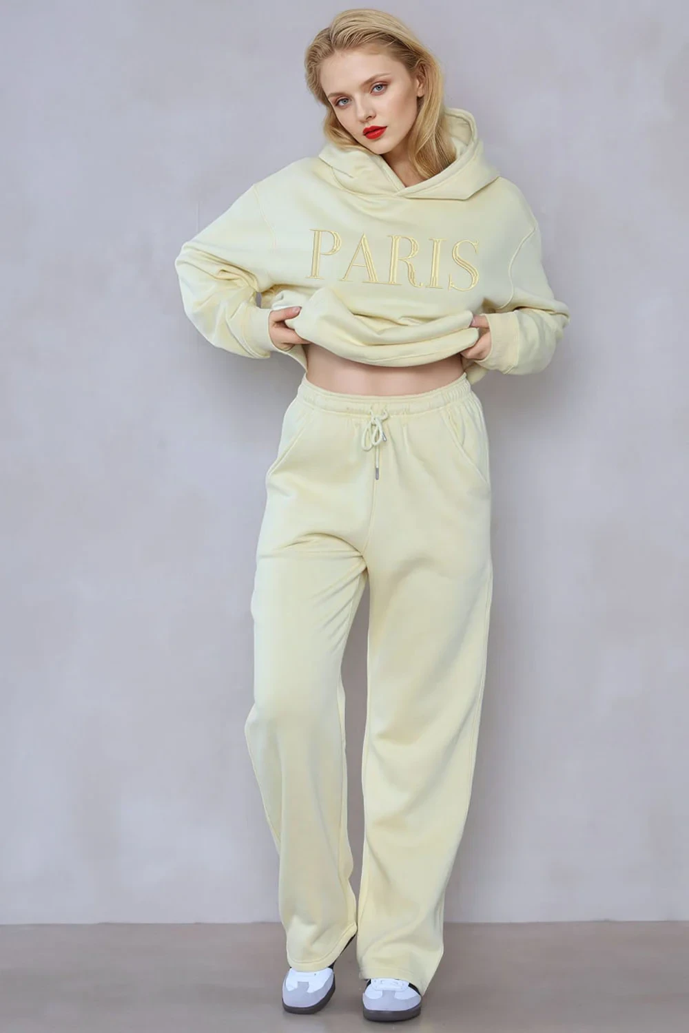 The straight-leg joggers feature a functional drawcord