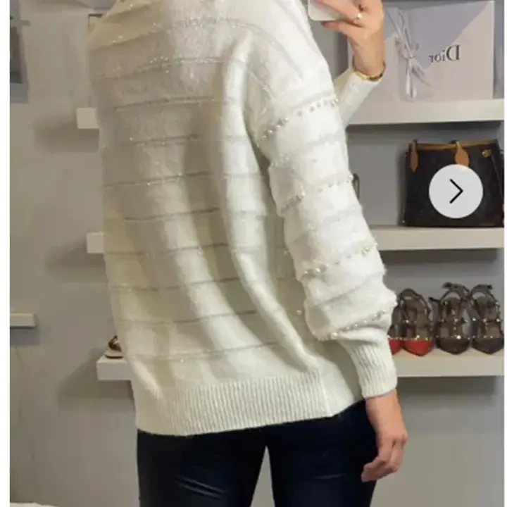 Oversized jumper top Plain white color Trim with faux pearl design Waist Length Length: 61cm Super soft knit fabric