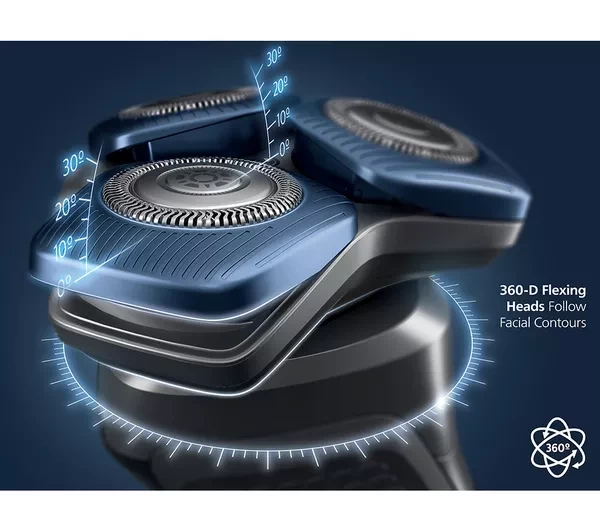 Struggling to get that perfect clean shave? This Philips shaver's got 360 D Flexing heads that adjust to the contours of your face for a close shave, even on tricky areas like your chin, neck and jawline. With the 45 self-sharpening blades and Nano SkinGlide coating, you'll always get great results, whether you prefer a dry or wet shave with gel or foam. And if you forget to charge it over night, just plug it in for 5 minute power boost that'll give you one full shave.