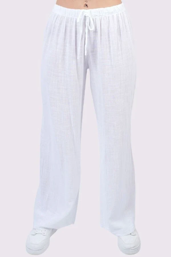 Elevate your casual wardrobe with these Italian cotton trousers, designed for the modern woman. The plus-size silhouette boasts a loose fit for all-day comfort, perfect for spring and summer. The drawstring waistband ensures a customizable fit, while the open hem adds a contemporary touch. These trousers are a versatile staple, easily paired with a range of tops for effortless style.