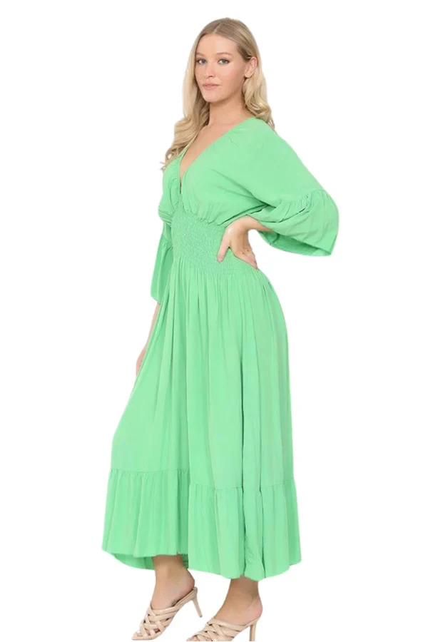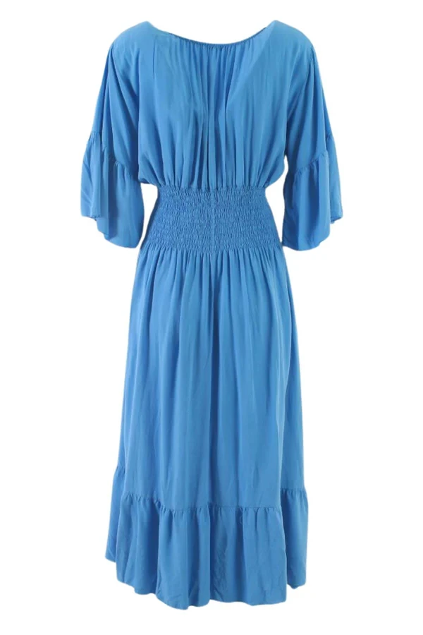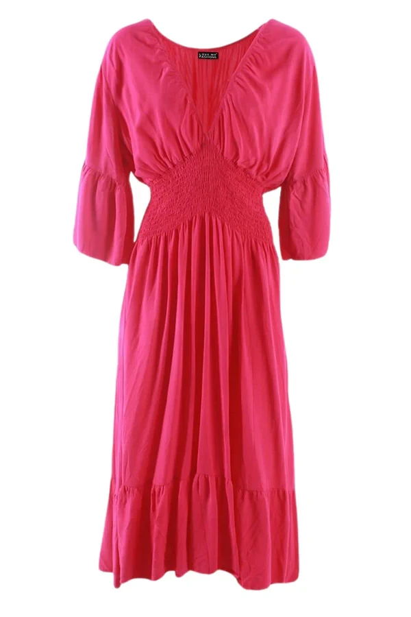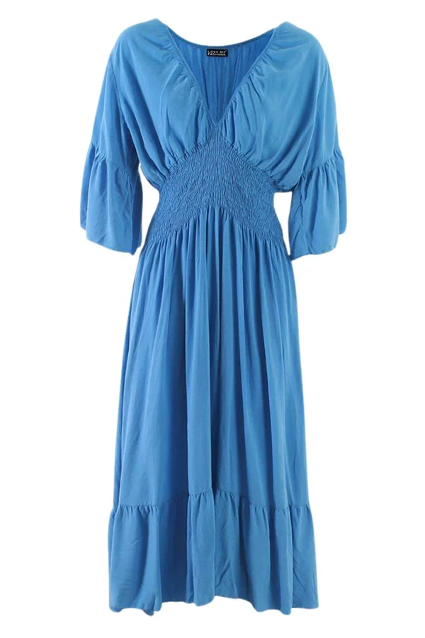 If you want to look sexy effortlessly- and you don’t know how to get this shirring waist maxi dress. Maxi has always been the first pick of women when it comes to looking appealing. Short frill sleeves are just flawless to go with any type of jeans and trousers you like. Plain style always speaks for itself- get the elasticated and comfortable Italian masterpiece now!