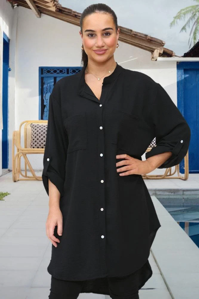 Cotton Button Pocket Kaftan Top