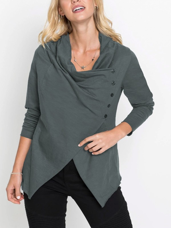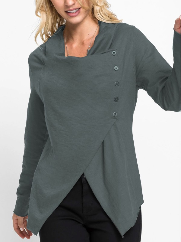 The fabric is so soft and simple fit! With a diagonal button placket and long sleeves. Length 66cm.
