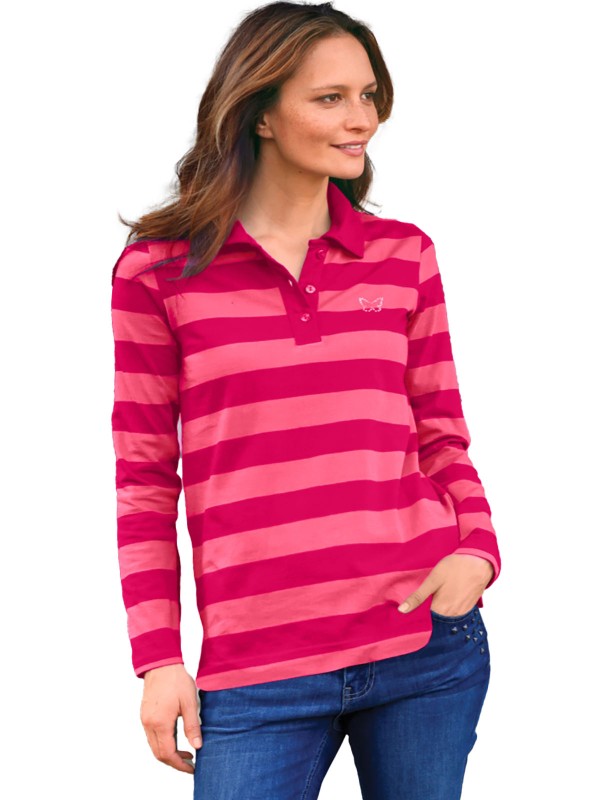 Comfortable in a cotton fabric, it features a collared neckline and long sleeves. Diamante butterfly detail at the chest. Length 25in
