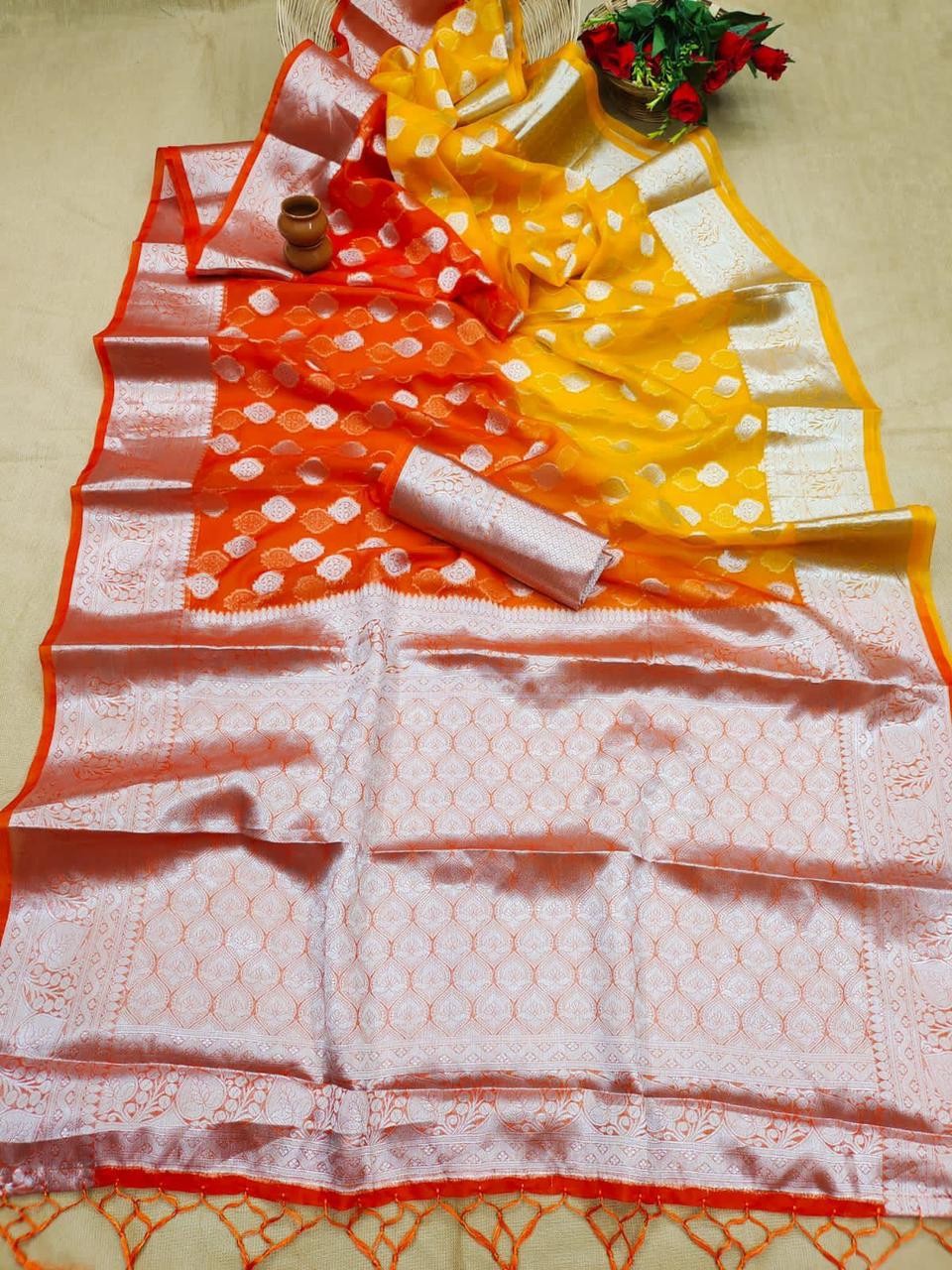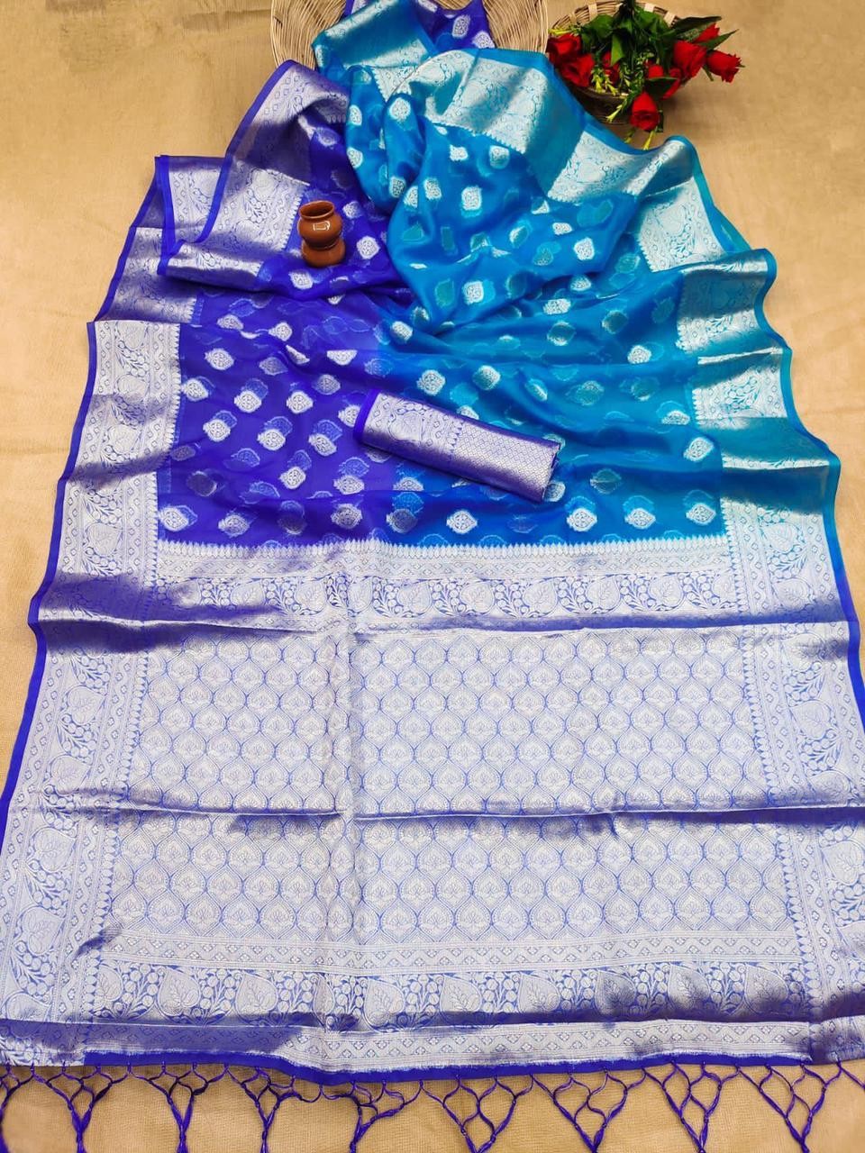 https://www.thehappyworld.co.uk/product/pure-organza-silk-saree-with-tie-n-dye-shaded-dyeing-in-full-saree-with-silver-zari-wooven-pallu-with-tassels-with-all-over-butta-weaves-in-saree-n-rich-zari-wooven-border-with-blouse