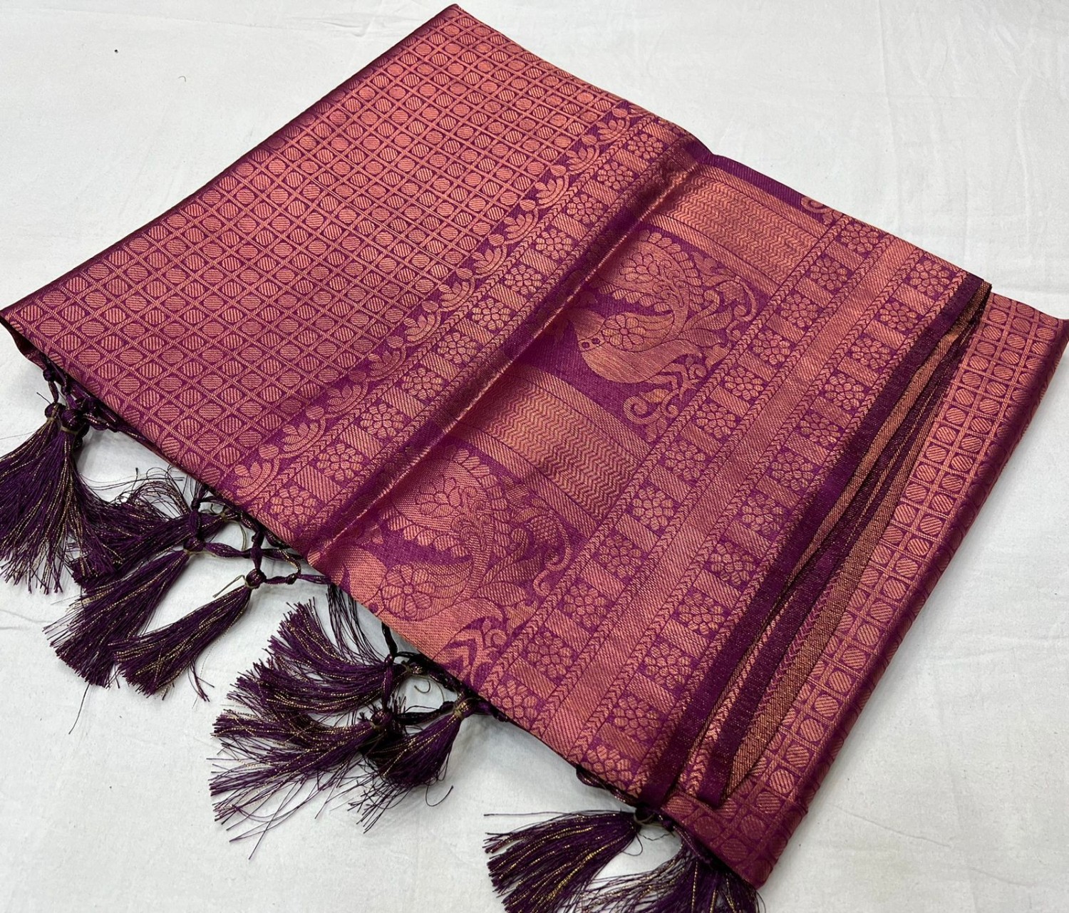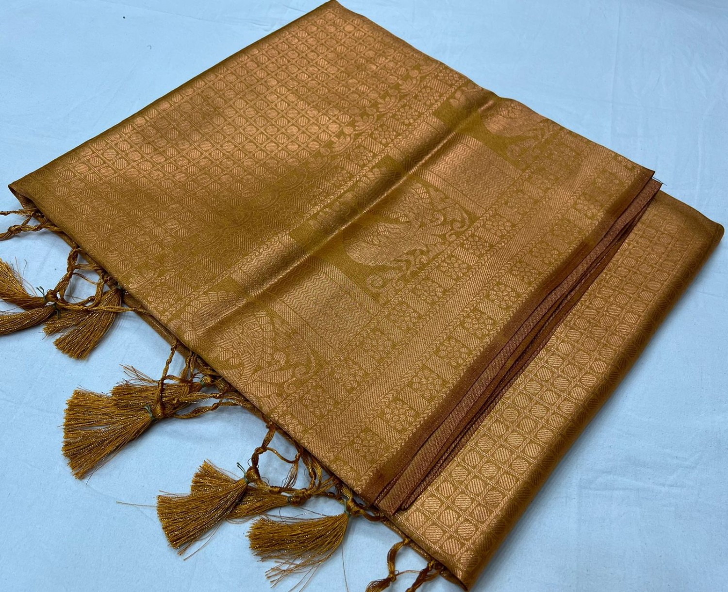 pure superb softy kuberpattu with rich copper silk zari rich deisgn