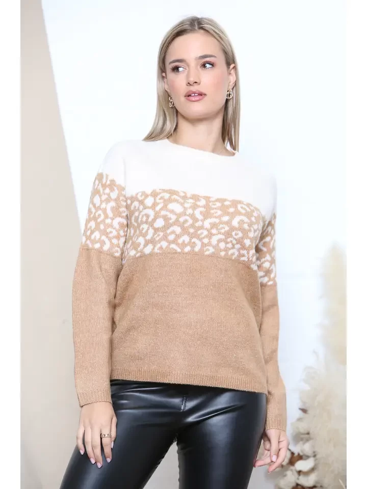 Raglan Sleeves Cheetah Block Colour Panel Jumper