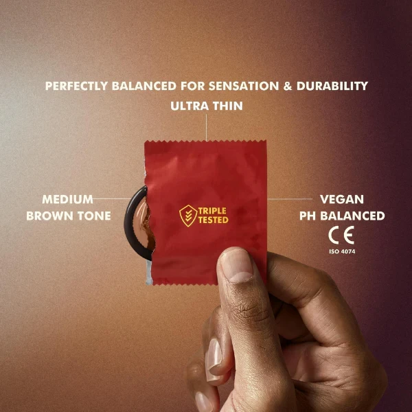 Feel Your Best The 1st skin-tone condoms to reflect your natural skin colour. Premium, extra-lubricated, ultra-thin male condoms with reservoir tip. Made with natural rubber latex for strength and sensation. Electronically triple-tested to the highest industry standards for comfort and confidence. Sealed in paper-foil packaging for safety and sustainability. A condom is a medical device.