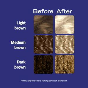The multi-use kit with easy-to-apply formula is specially developed for multiple techniques: highlights, face-framing, root regrowth or full head application. The plex protection system helps to protect the hair, with up to 80% less hair breakage*. The after-colour hair treatment helps to neutralise yellow tones while leaving hair soft and healthy-looking. Suitable for light brown to dark brown hair.