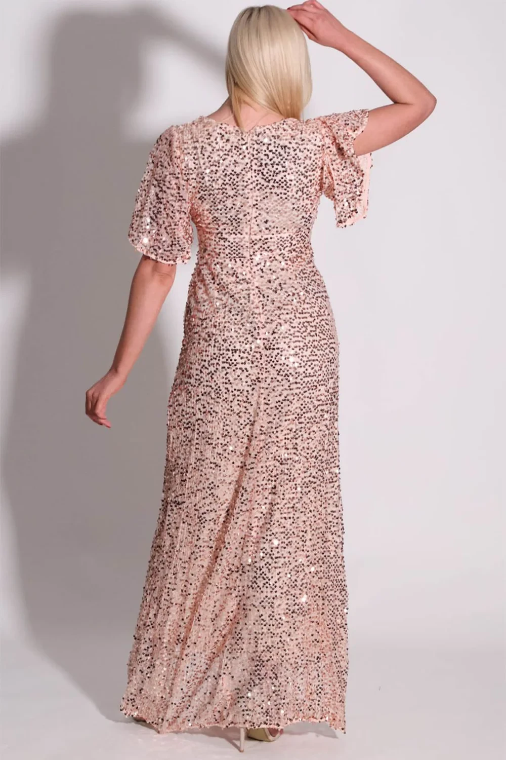 Angel Sleeve Maxi Dress in Stretch SequinFully Lined with Side SlitConcealed Zip fastening at backApproximate Length:158cm95% Polyester, 5% Spandex