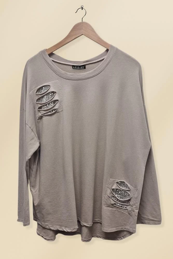 https://www.thehappyworld.co.uk/product/sequin-patched-ripped-cotton-top