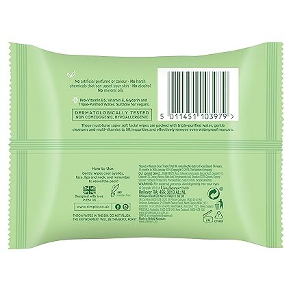 Simple Facial Wipes Micellar, 25 Count (Pack of 6)