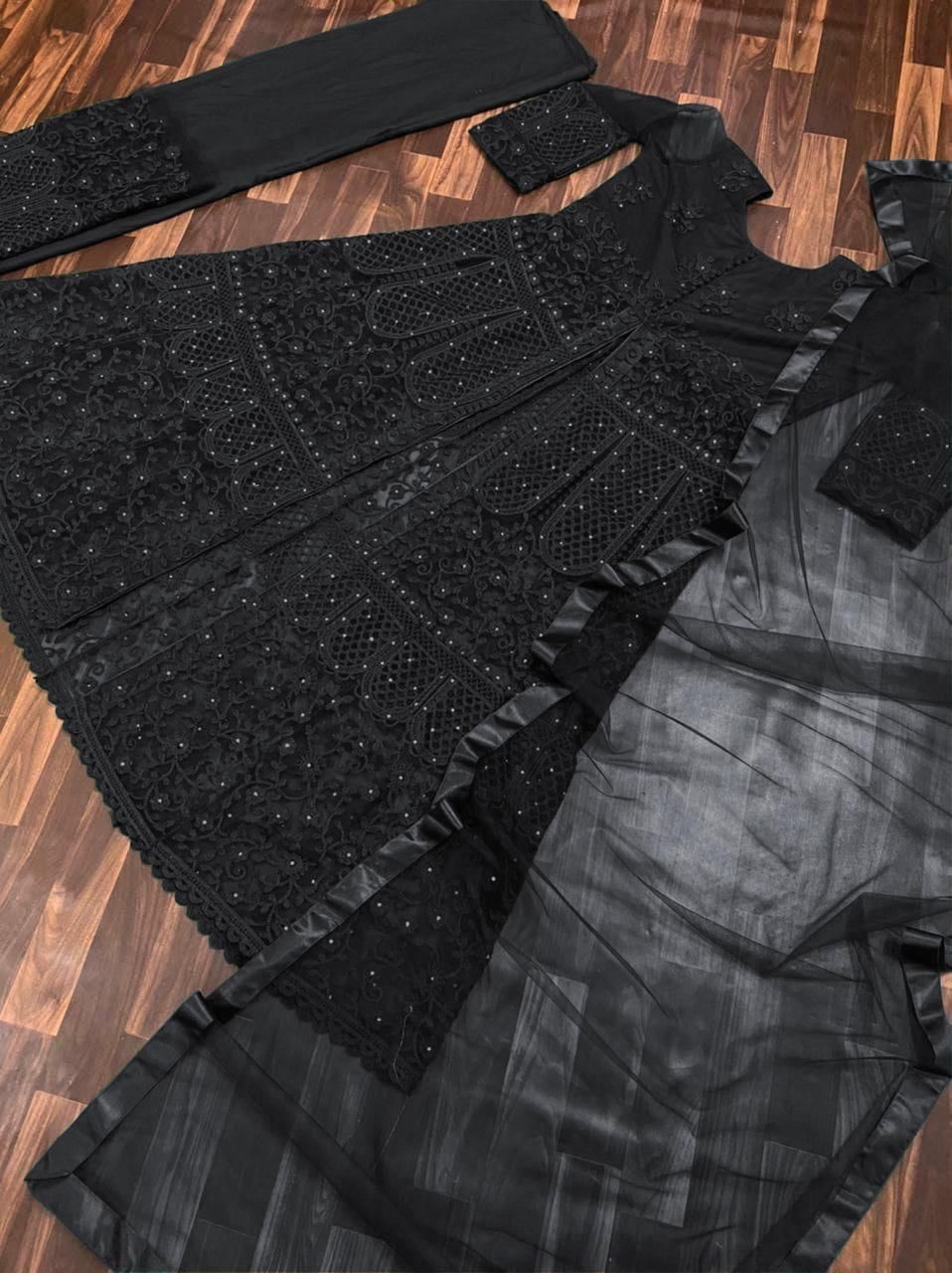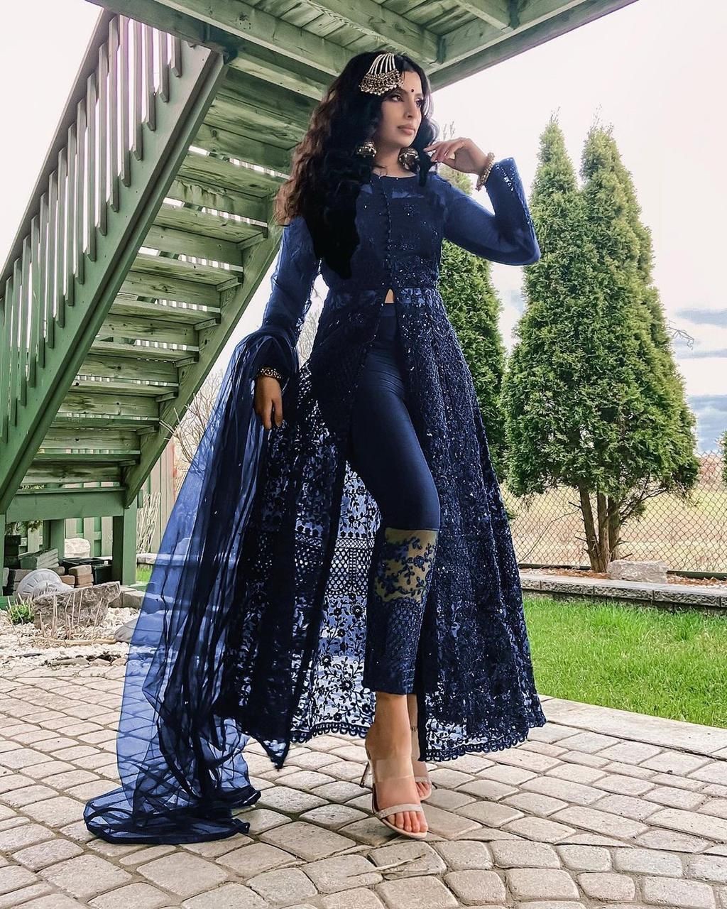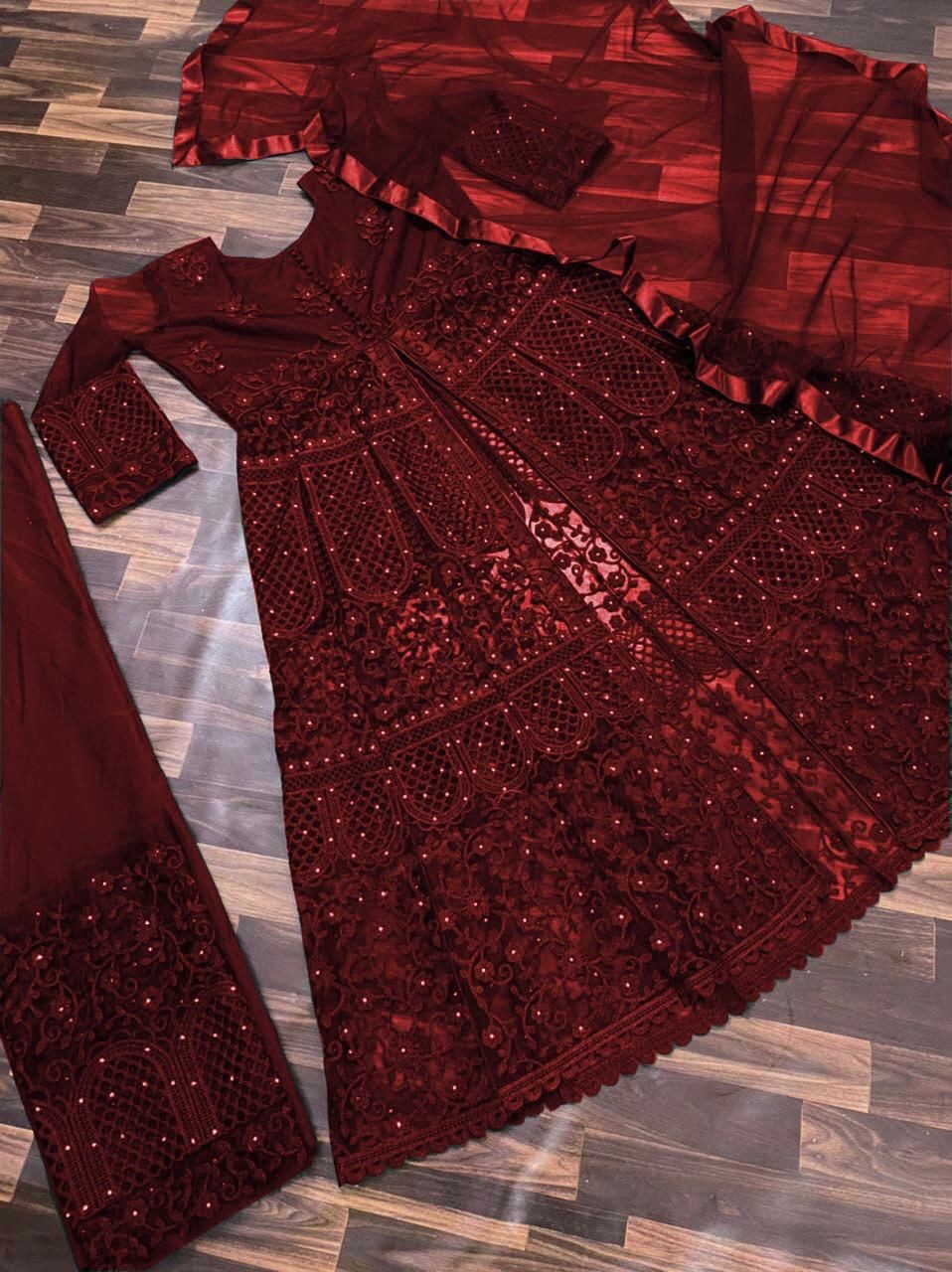 Top Fabric : Soft Butterfly Net With Embroidery Work With Daimond Hand Work With Full Sleevs