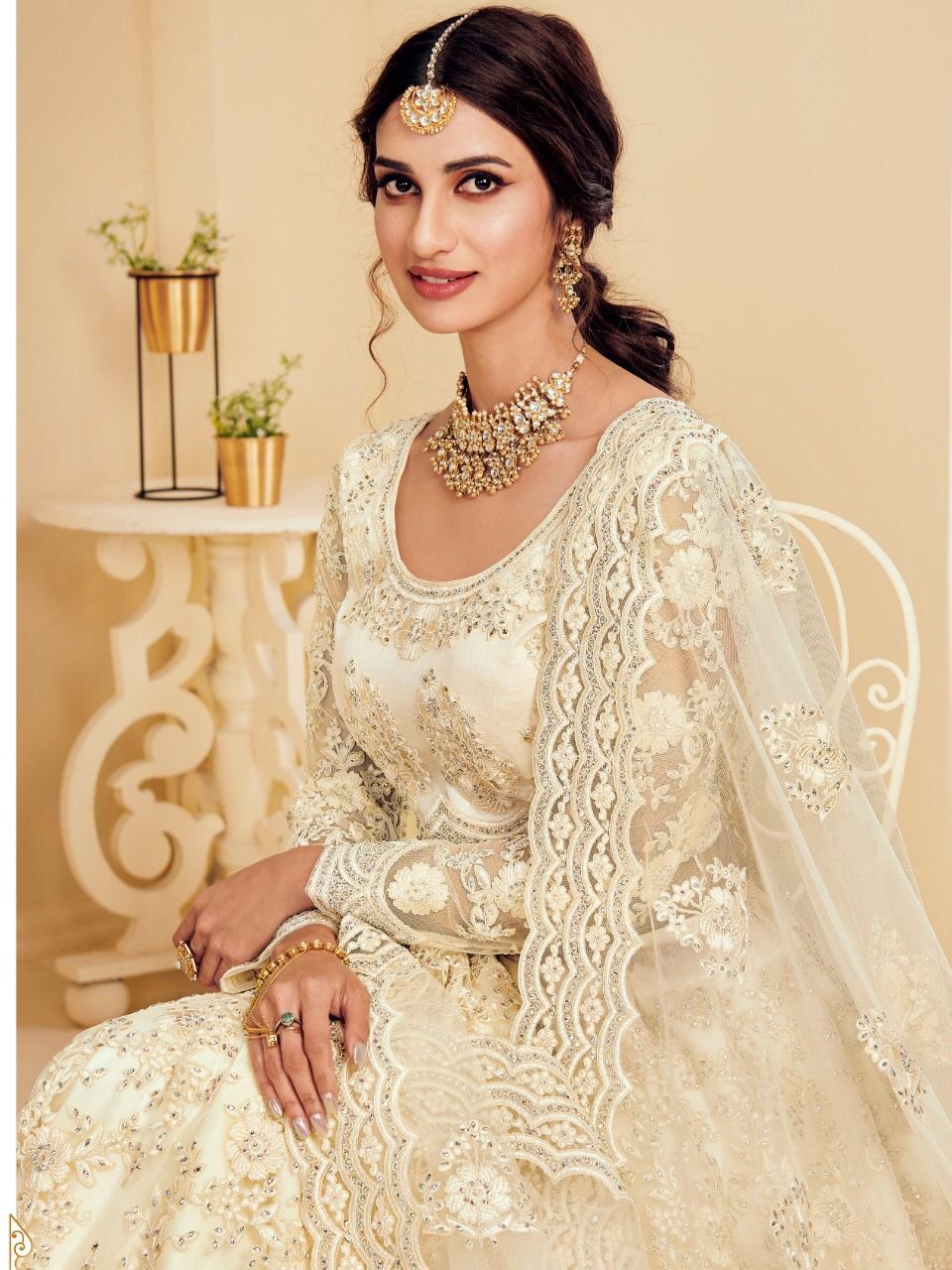 *Duppata:-* Soft Premium net with embroidery and crystal stone work