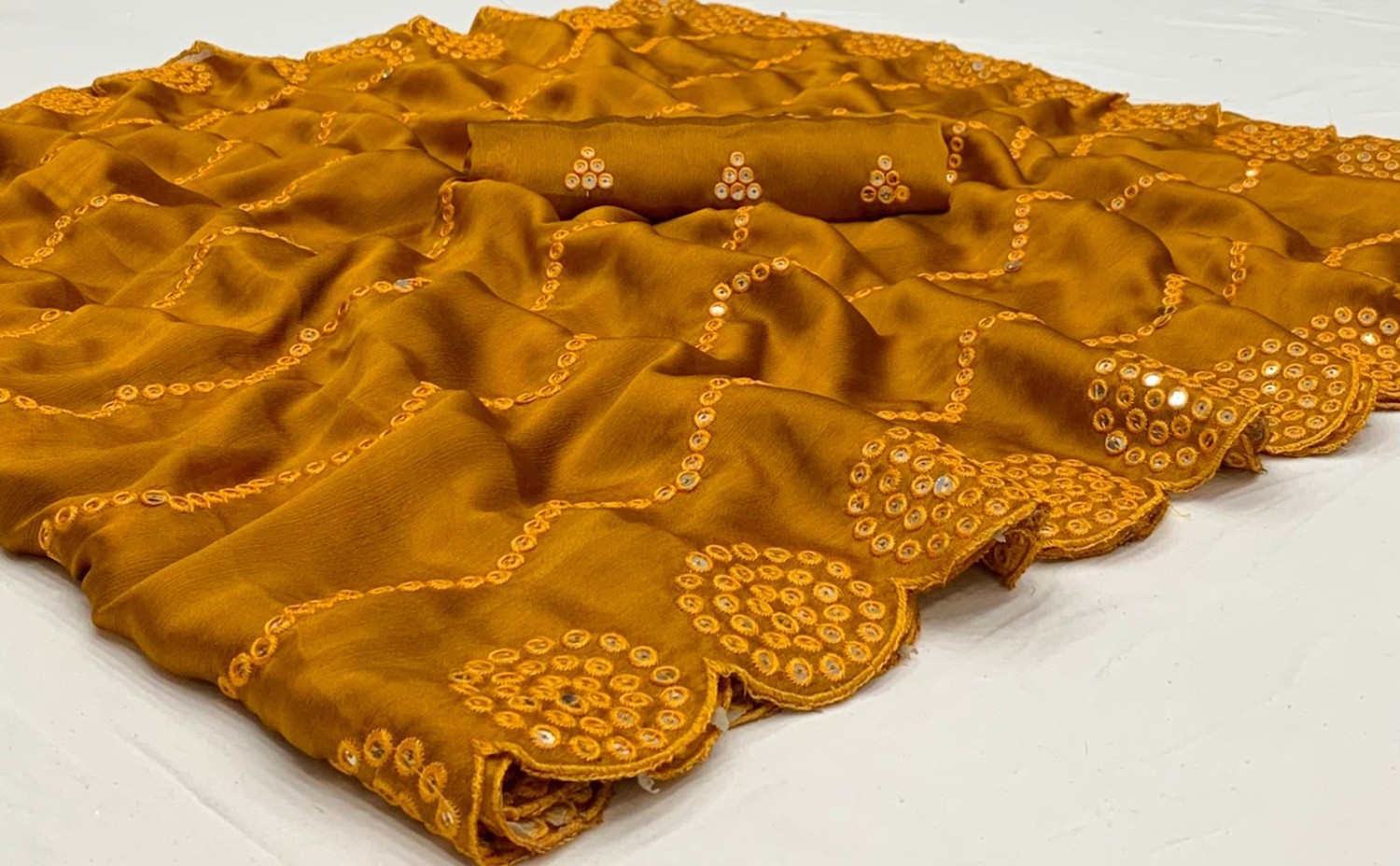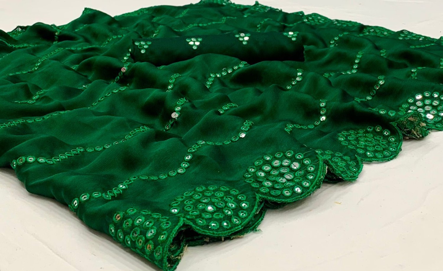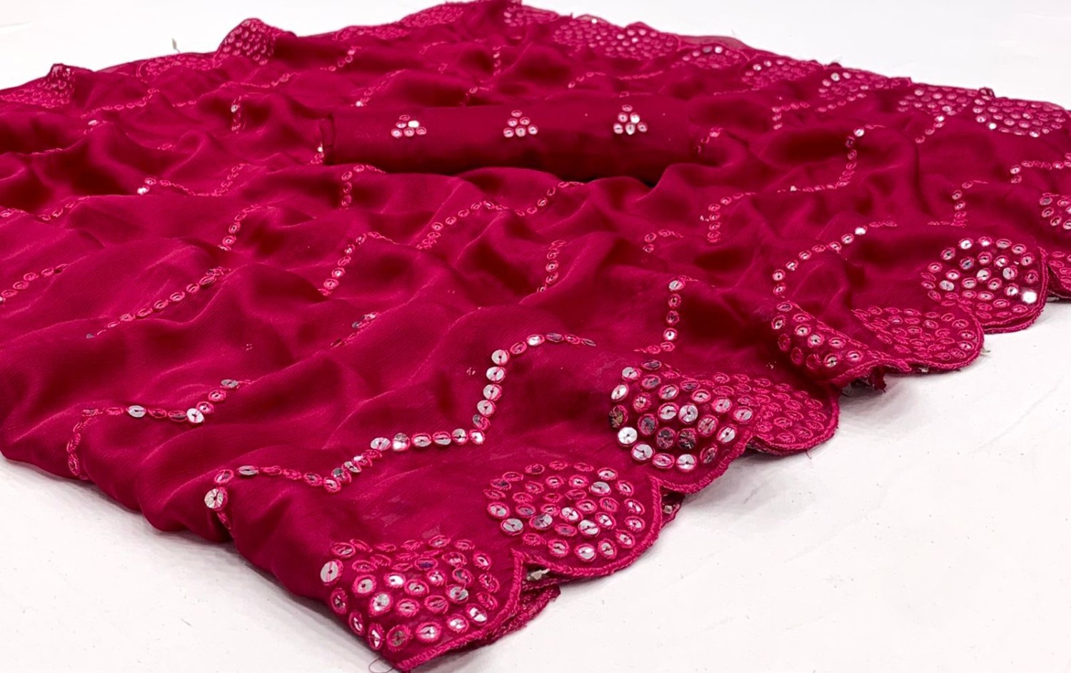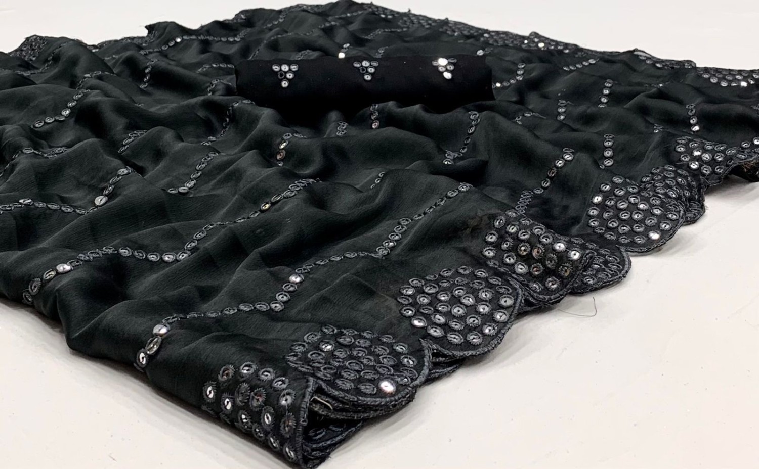 Fabric - Soft Siffon Fabric And Embroidery Sequence Work In full Saree With Cut Work Border With Running Blouse Embroidery Sequence Work