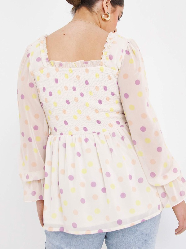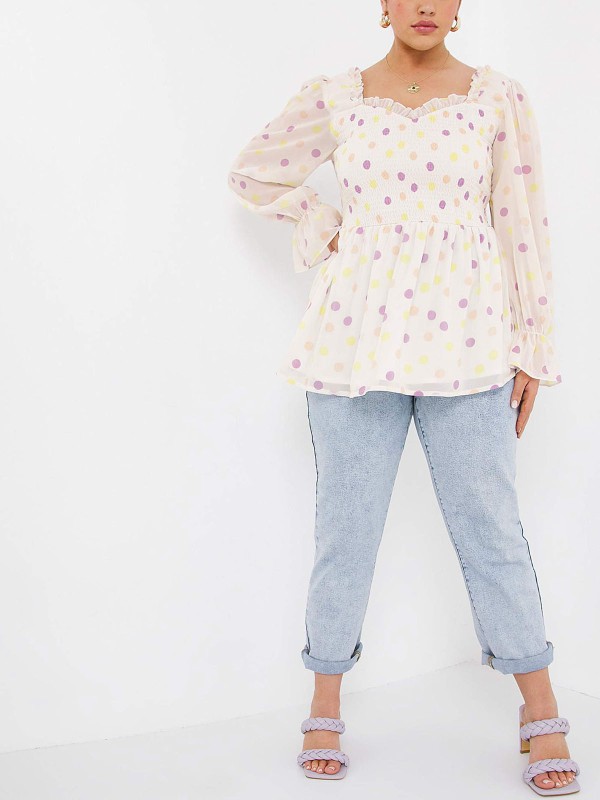 This super on-trend top is a must-have for your wardrobe this season. Featuring a flattering peplum shape in a gorgeous black floral print, shirred body, a sweetheart neckline with frill details, elasticated shoulders and long sleeves with frill cuffs. Length 27in/69cm.