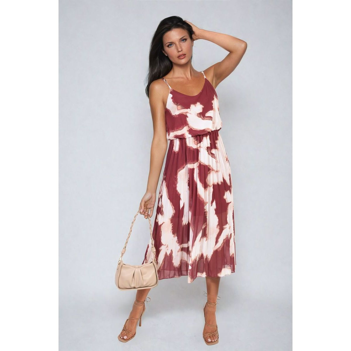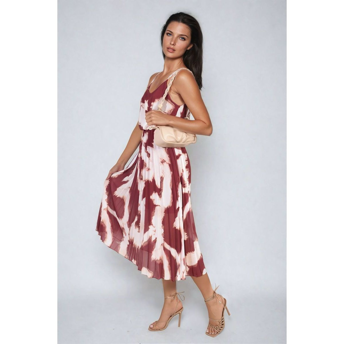 Step out in style with the Lucy Printed Strappy Pleated Midi Dress! This pretty dress features a fun printed design and cute strappy details that add a flirty touch. The pleated midi length flows beautifully, making it perfect for twirling around at any event. A must-have for your wardrobe!