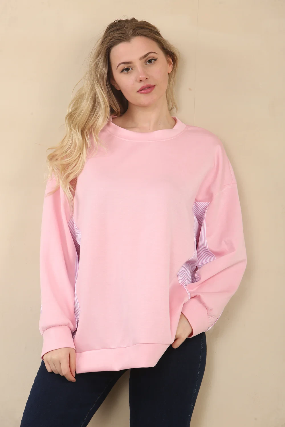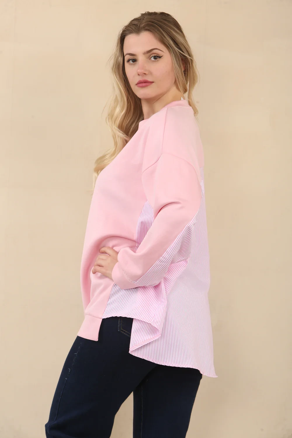 STRIPE SHIRT DETAIL SWEAT