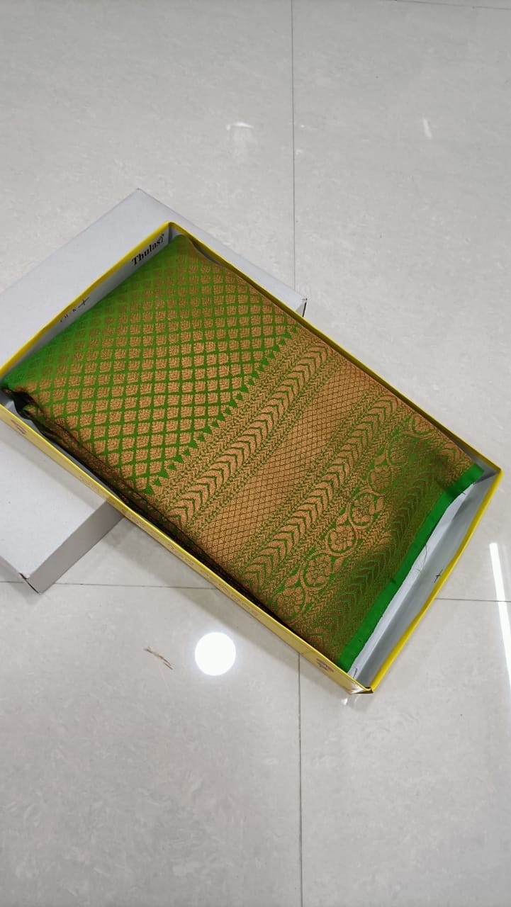 *Chittu pallu and rolling pallu* *with pink copper jarigai *Soft cloth fabric with* *smoothness* *Saree length 6.25mters*