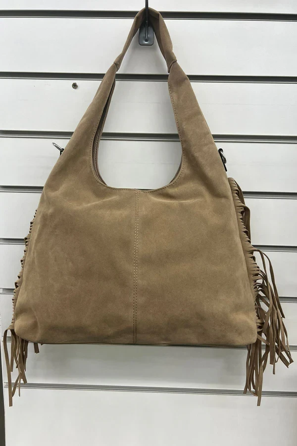Add effortless bohemian flair to your everyday look with this women’s black suede shoulder bag. Crafted from soft faux suede, this large hobo-style handbag features a relaxed silhouette with playful fringe detailing along the sides, giving it a chic yet laid-back vibe. The spacious interior provides ample room for your daily essentials — from your phone and wallet to makeup and accessories — making it perfect for work, travel, or casual outings. Its single wide shoulder strap ensures comfortable wear, while the soft-touch texture adds a luxurious finish. Designed to complement both casual and smart outfits, this fringe shoulder bag combines practicality with timeless boho-inspired style, making it a versatile must-have for every modern wardrobe.