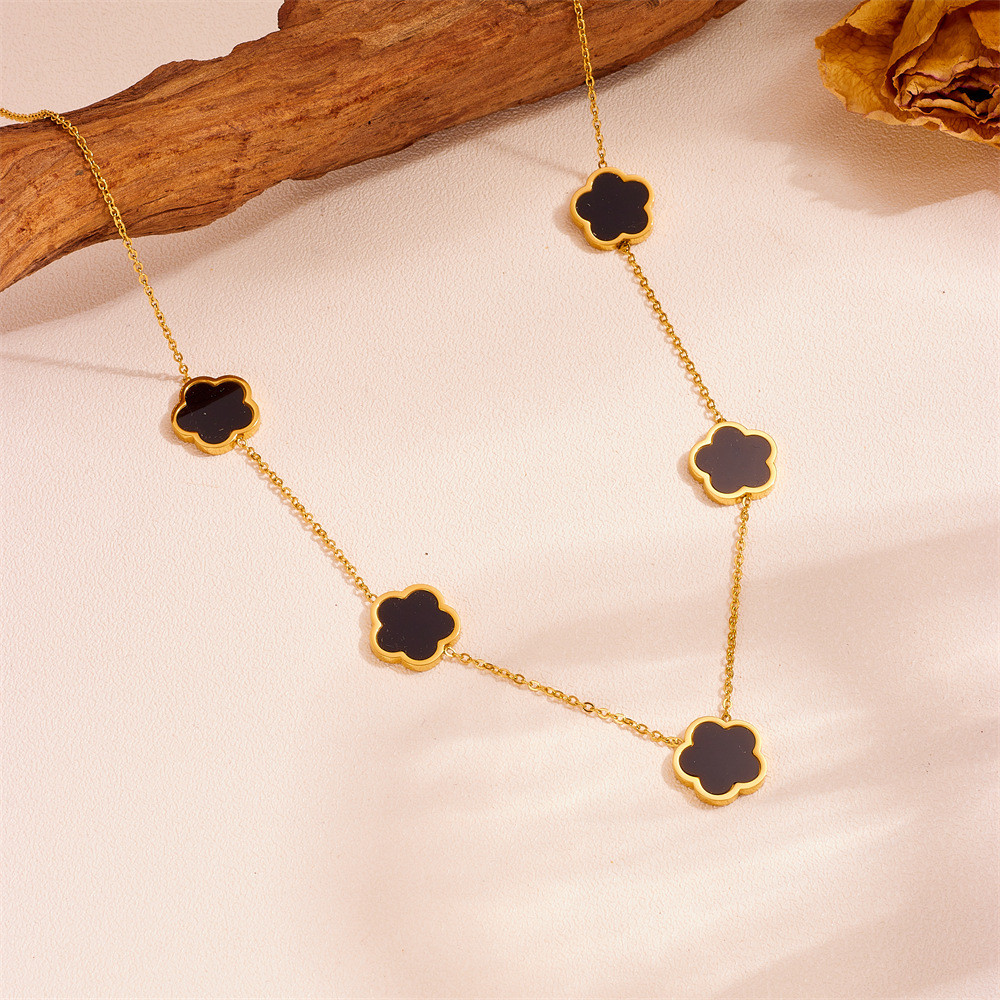 The Sweet Minimalist Classic Style Pork Belly 304 Stainless Steel 18K Gold Cut Black Shell Necklace, Earring and Bracelet Set is a sophisticated jewelry collection designed for women who appreciate coordinated elegance. Crafted from premium 304 stainless steel and titanium steel, each piece offers durability, strength, and long-lasting shine. The 18K gold cut finish adds a luxurious glow that beautifully contrasts with the sleek black shell detailing. This matching set includes a necklace, earrings, and bracelet, creating a perfectly balanced and stylish ensemble. The titanium steel pendants ensure lightweight comfort while maintaining a sturdy structure. Designed in a chic, fresh, and sweet style, the set complements both casual and formal outfits effortlessly. The necklace features a smooth box chain that sits comfortably around the neck. Intricate patterns combining shapes, plants and flowers, and subtle cross-inspired motifs add artistic refinement. Weighing 20g, each piece provides a comfortable and wearable feel. The black shell accent introduces a modern and elegant contrast to the gold tones. Polished surfaces enhance the feminine and timeless appeal of the set. Ideal for special occasions, office wear, or everyday styling. Durable craftsmanship ensures the pieces maintain their shine and structure over time. Perfect as a thoughtful gift for birthdays, anniversaries, or celebrations. This jewelry set beautifully blends durability, luxury, and understated sophistication in one stunning collection. ✨