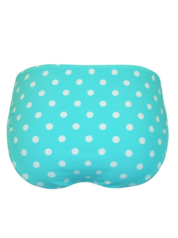 These flattering hipster bikini bottoms are low rise with an all-over spotted print.
