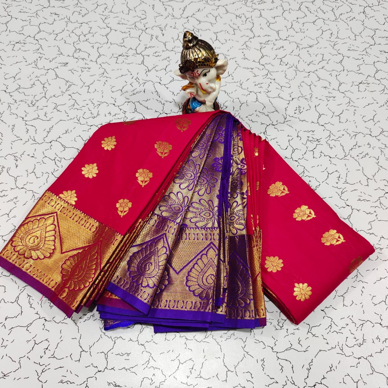 Rich Pallu Body Embossed Bhutta with Embossed blouse - 6.30 Mtrs*