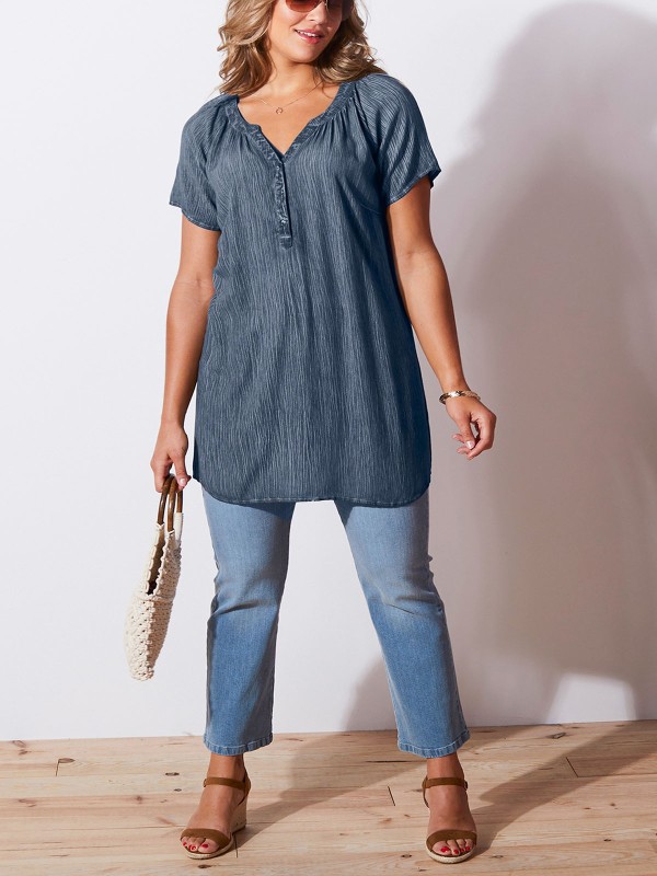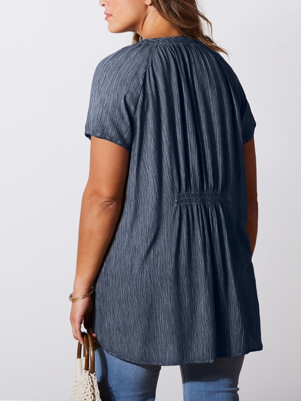 Upgrade your casual collection with this new-in top. Made from a comfortable textured fabric, it features a notch neckline with short sleeves, a button placket and elasticated panel at the back. Length 30in.