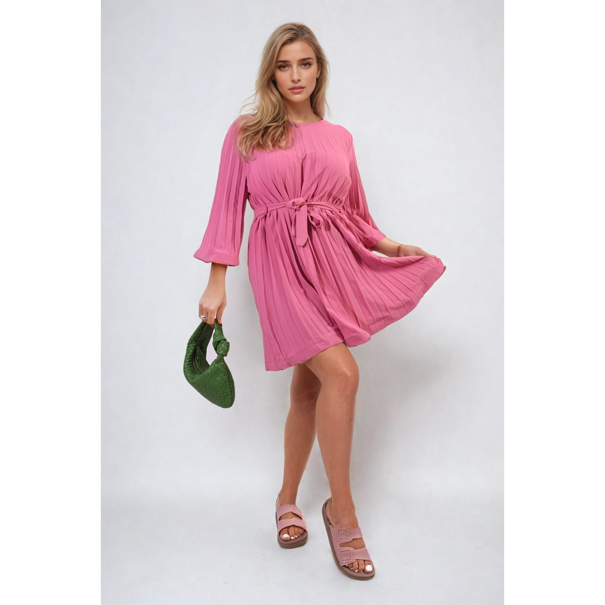 Don't miss out on adding this versatile and stunning piece to your collection. The Carmen Pleated Tie Waist Mini Dress is not just a dress; it's a statement. Shop now and step into your next adventure with confidence and elegance! ?️
