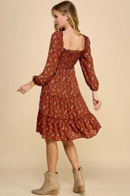 Boho Chic at Its Best: Tiered Dress with Smocking & Long Sleeves