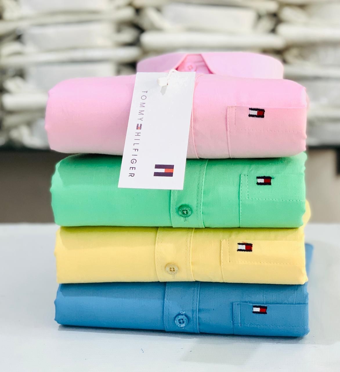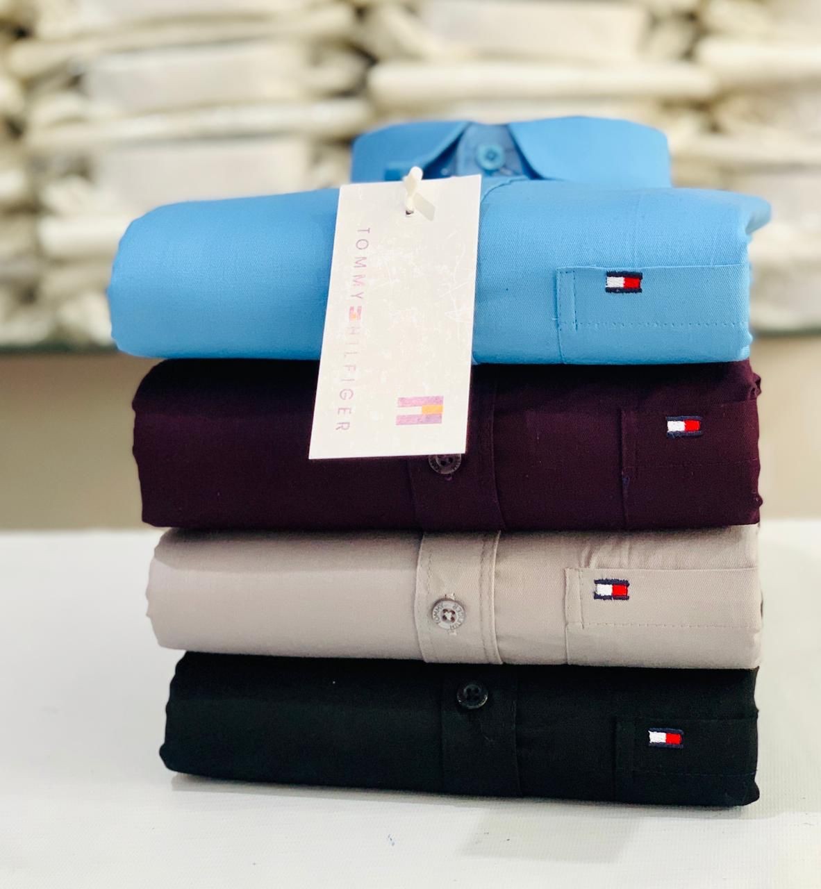 Brand "- Tommy Hilfiger STUFF PURE COTTON PREMIUM QUALITY Full sleeves shirt High Quality plain Shirt Washable pcs Branded and matching button Smart packing Size : M. L. XL. XXL 38. 40. 42. 44 Regular Fit
