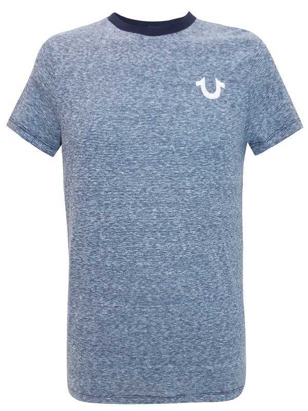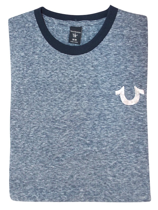 True R3ligion NAVY Mens Supersoft Cotton Rich Striped Short Sleeve T-Shirt